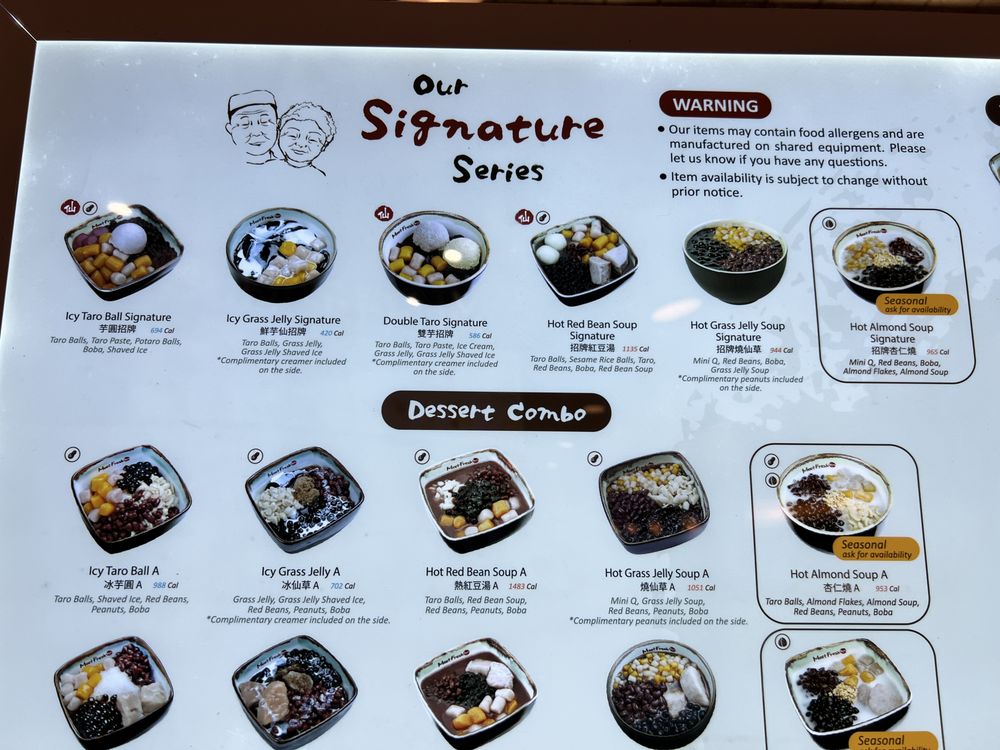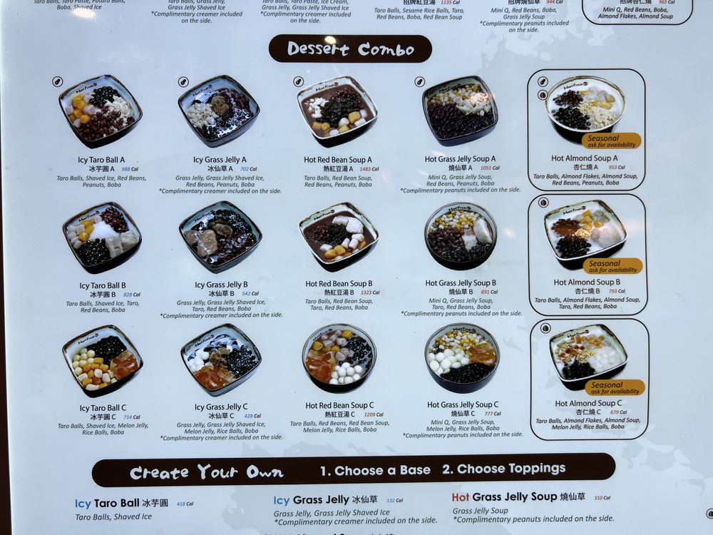 (Grass Jelly, Grass Jelly Shaved Ice, Taro Balls, Taro Paste, Ice Cream)
