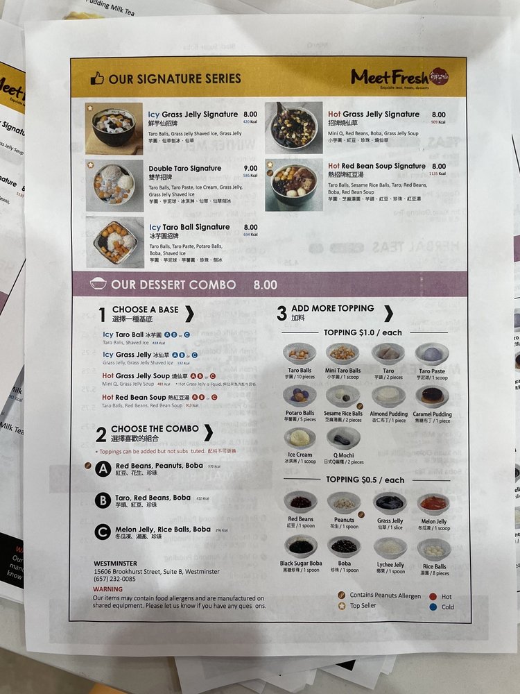 Welcome to Meet Fresh Westminster, a delightful Taiwanese dessert haven located at 15606 Brookhurst St, Westminster. Specializing in traditional grass jelly and bubble tea, this eatery offers an exciting twist on classic flavors.
